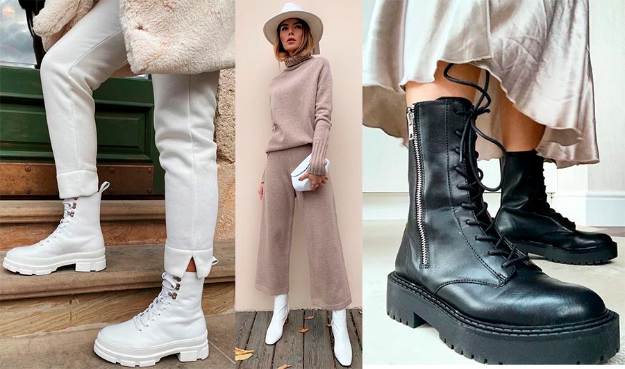 Toutes les bottes, bottes à semelles rugueuses et massives, bottines chelsea, bottes de style militaire - tout cela fait référence aux chaussures modernes.