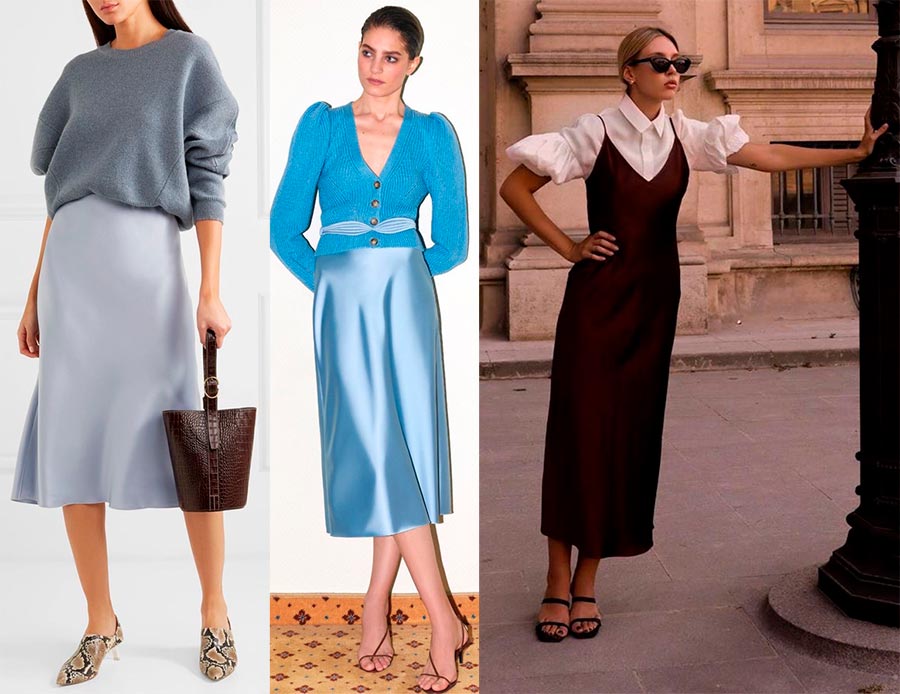 Si vous envisagez de célébrer le Nouvel An, par exemple, dans une maison de campagne, il peut s'agir d'un costume en tricot uni tendance ou d'un cardigan ou d'un pull chaud combiné à une jupe midi en satin délicat. Si nous parlons d'un look plus élégant, les robes à enfiler vous aideront bien. Ils peuvent être utilisés à la fois indépendamment et en duo avec des hauts ou des chemises, et les textures peuvent être complètement différentes.