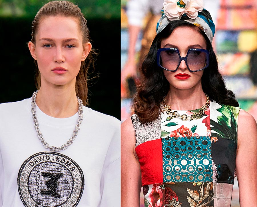 Quelles chaînes sont à la mode actuellement ? N'importe qui! Brutal et romantique, gracieux et superposé. De métal doré et argenté, de formes et de tailles bizarres.