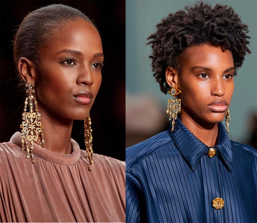 Les boucles d'oreilles sont les chefs de file des tendances de la mode depuis plusieurs saisons. Cette décoration autonome sera la clé de l'image. Les boucles d'oreilles ne doivent être portées que sur une oreille ; pour l'autre, choisissez une boucle d'oreille au design minimaliste.