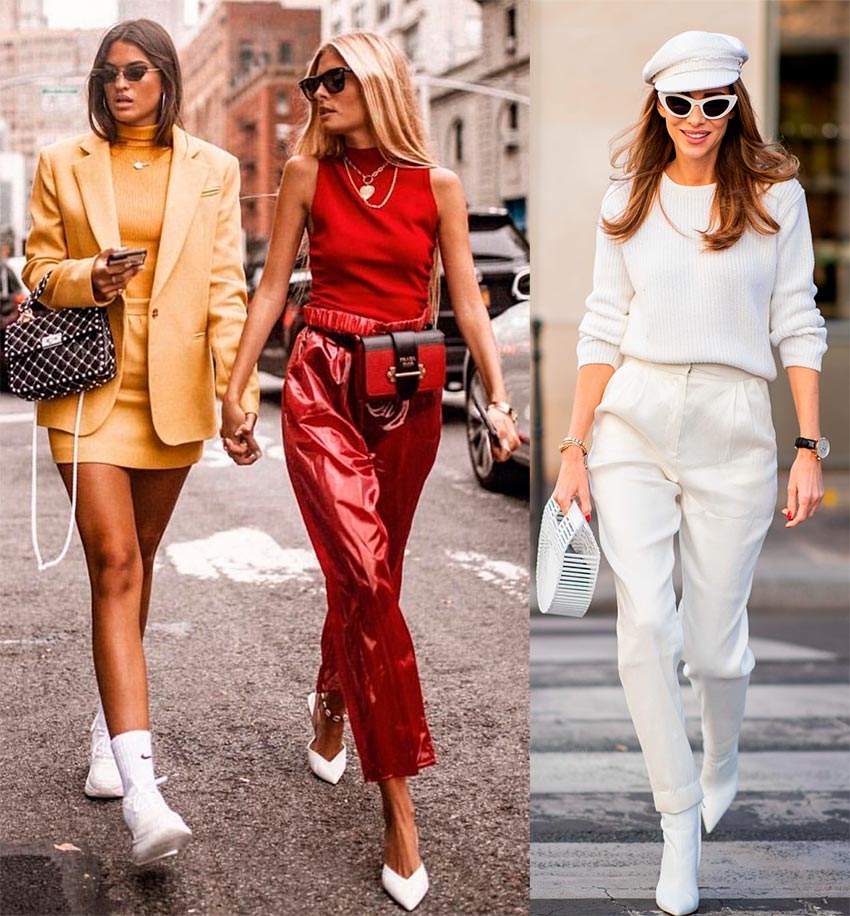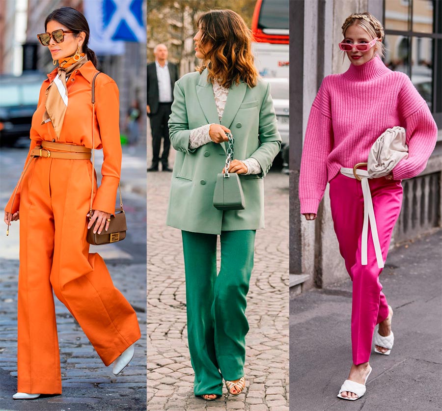 N'oubliez pas que la couleur doit représenter plus de 70 % de l'image, ce qui signifie que les 30 % environ restants peuvent être des achromates ou une autre couleur neutre. Si pour un look complet il vous manque des détails dans la couleur désirée, utilisez : noir, blanc, gris ou beige. Cela peut être un sac, des chaussures ou un vêtement.