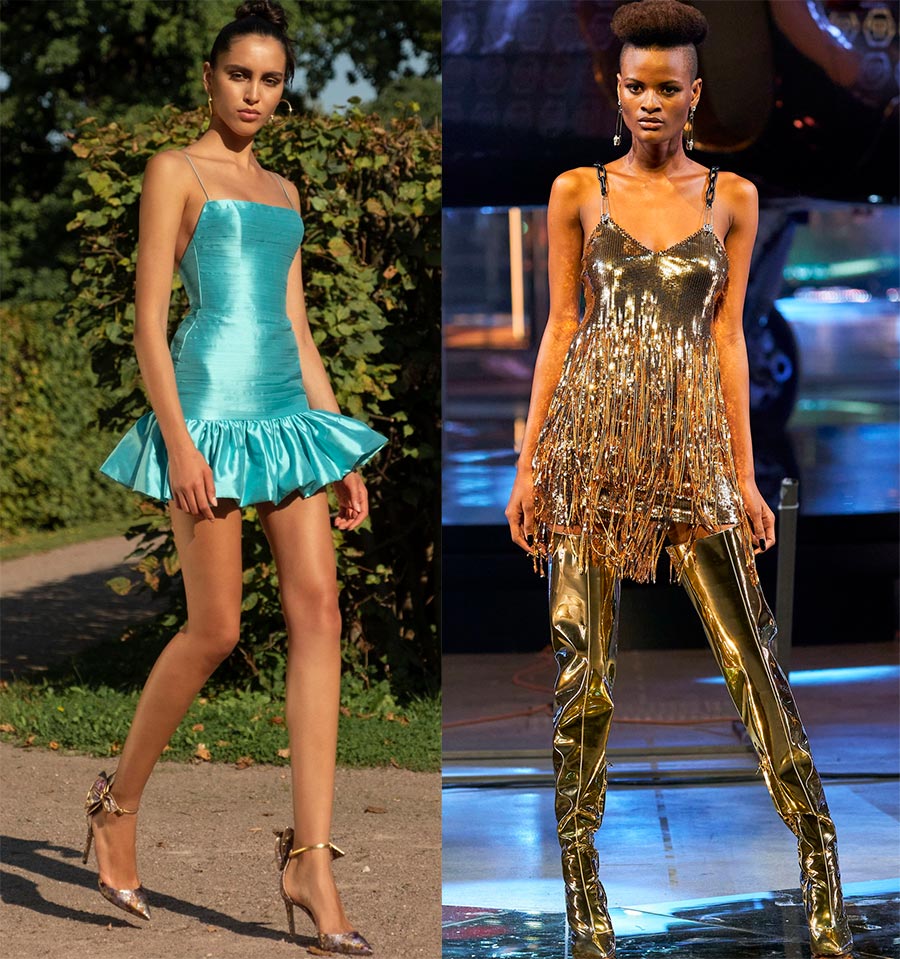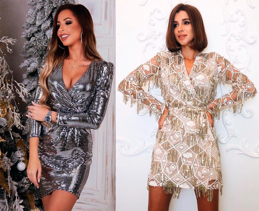 La plus populaire reste une mini robe à paillettes, car les paillettes ont toujours symbolisé les vacances, le délice. Cette année, l'accent est mis sur les modèles multicolores, y compris rayés. Les combinaisons, les robes midi et maxi en paillettes sont également pertinentes.