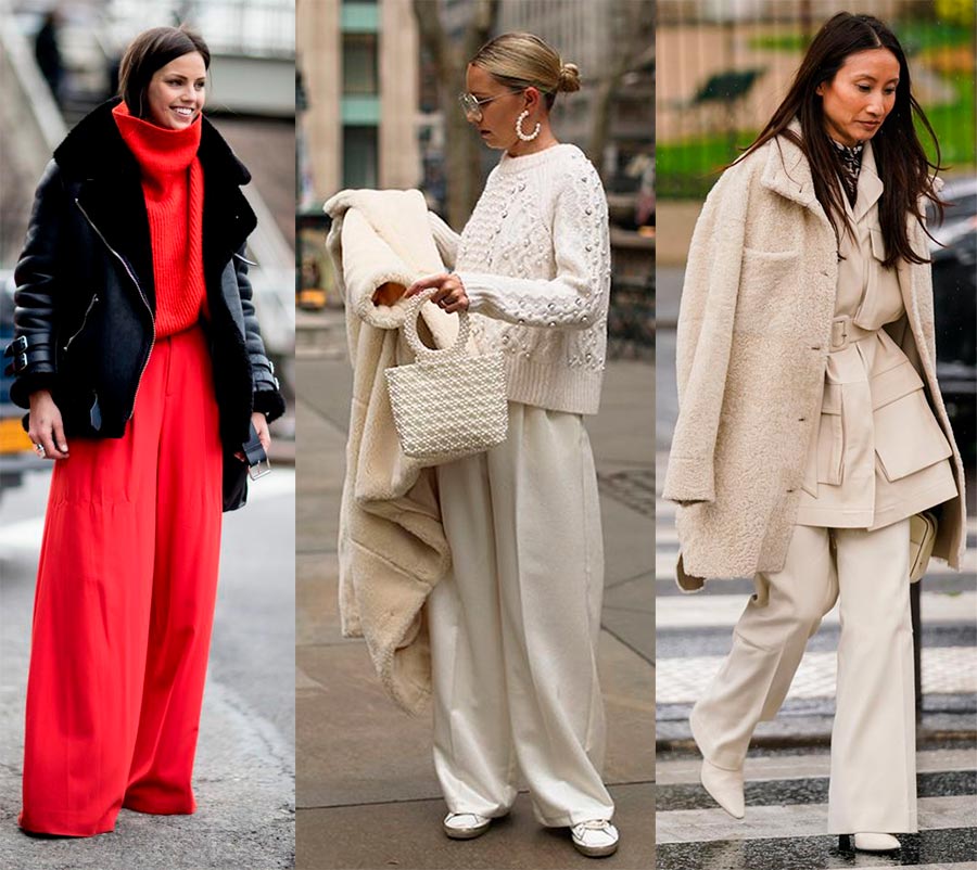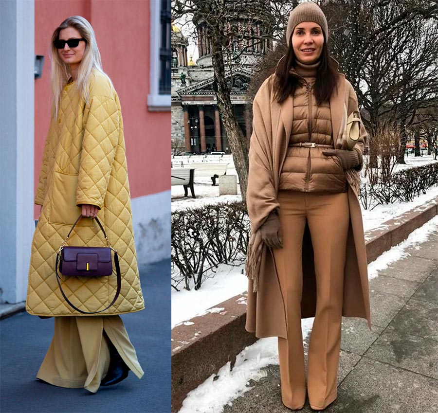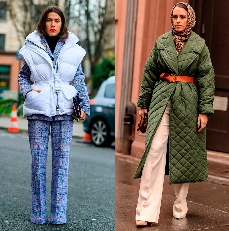 Pour la période hivernale, lorsque nous commençons à préparer du thé à la cannelle et que nous écoutons plus souvent les mélodies du Nouvel An, lorsque la neige est molle et que tout le monde sort son bonnet, choisissez un manteau plus dense avec une doublure chaude ou un matelassé d'actualité, longueur midi. Il créera le look palazzo parfait pour les jours de gel. Alternativement, utilisez des superpositions et portez un gilet en duvet mince sous vos vêtements d'extérieur.