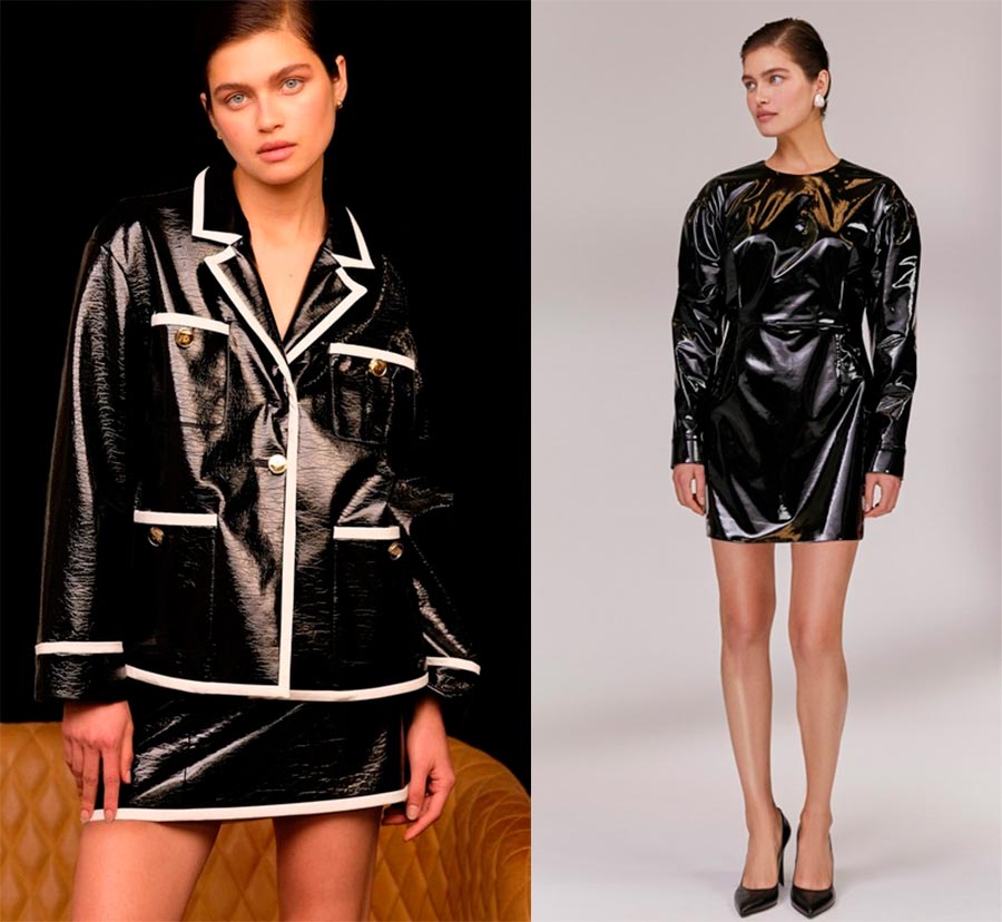 Une autre nouveauté des collections du Nouvel An est le look éco-cuir. Hauts corsets, jupes, pantalons - sans aucun doute, votre attention est garantie. Les couleurs classiques sont le noir et le beige, mais pas la version classique. 12storeez dans une robe spectaculaire combinant deux tendances chaudes à la fois : le cuir écologique et les manches volumineuses. ALL WE NEED a présenté un arc total en cuir spectaculaire, complétant le look avec des gants longs chics. Ces tenues sont belles en elles-mêmes, mais des accessoires étincelants peuvent être utilisés pour améliorer l'ambiance.