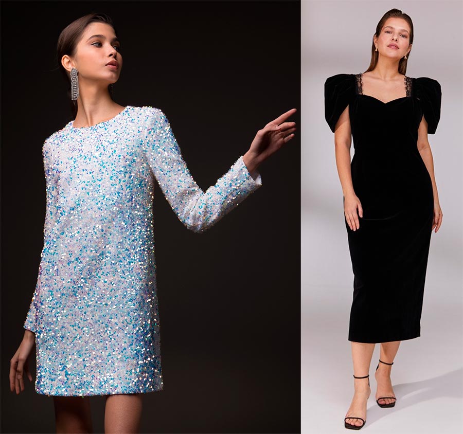 Pour ceux qui n'entendent en aucun cas réduire le degré d'élégance, les créateurs russes ont préparé des tenues décorées de paillettes et de pluie brillante, traditionnelles pour le Nouvel An, ainsi que des modèles en velours et dentelle et des robes longues.