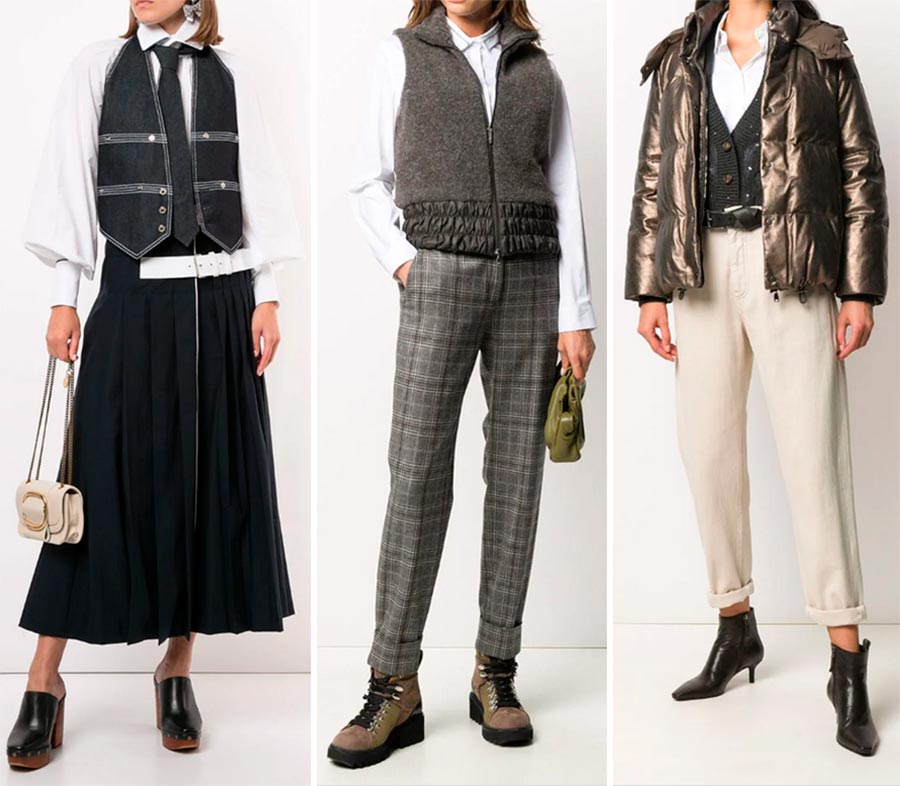 Brunello Cucinelli, Dice Kayek, Fabiana Filippi montrent que les gilets peuvent faire passer le look avec un chemisier blanc au niveau supérieur. Le gilet peut être costume, tricoté et même sportif avec une fermeture éclair.