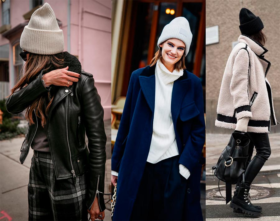 Pour un temps plus chaud, pensez à un bonnet fait d'un mélange de tricot fin avec de la laine ajoutée. Ce sera la meilleure option si vous ne voulez pas porter une grosse maille et ajouter de l'hyper-volume. Le modèle allongé avec un petit revers rendra l'image plus sportive, dynamique et légère. Le modèle est soigné, gracieux et plaira certainement à la plupart des femmes. Associez-le à un manteau, un jean et des bottes rugueuses. Les recommandations pour les nuances sont simples - les pastels sont basiques et rajeunissent n'importe quelle tenue.