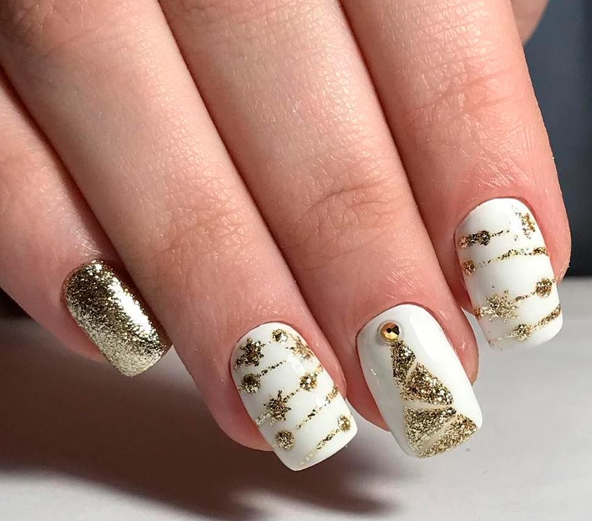 Le blanc est l'un des favoris pour la saison d'hiver et surtout pour le nouvel an. La belle couleur blanche émaillée ressemble vraiment à la neige et est parfaite pour les jours spéciaux. Et le design des ongles blancs coïncide également avec l'or ou l'argent - c'est généralement une option idéale pour célébrer le Nouvel An.
