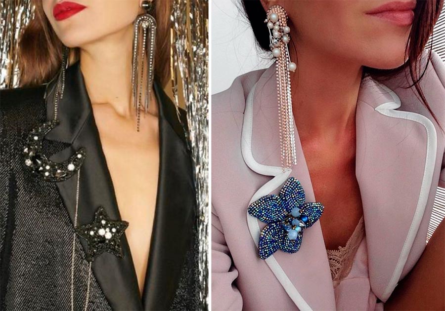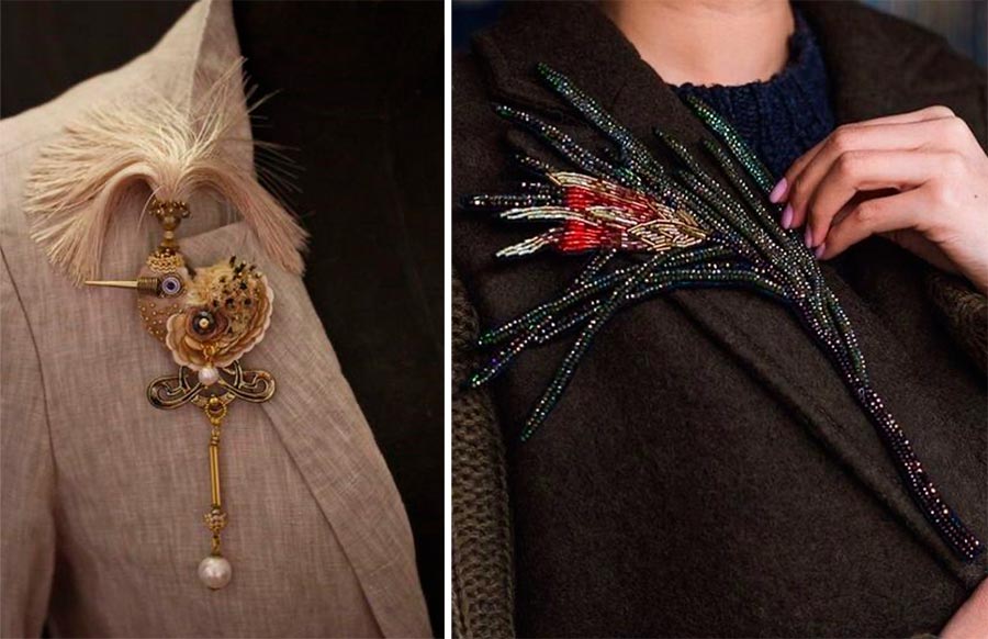 2. Vous avez un costume gris ? Une broche fera très bien l'affaire ici. Vous pouvez choisir des ajourés, avec n'importe quel symbolisme, fantaisie, mais recouverts de pierres. L'essentiel est qu'il soit massif, accrocheur, se démarque. Vous aimerez particulièrement la broche chatelain.