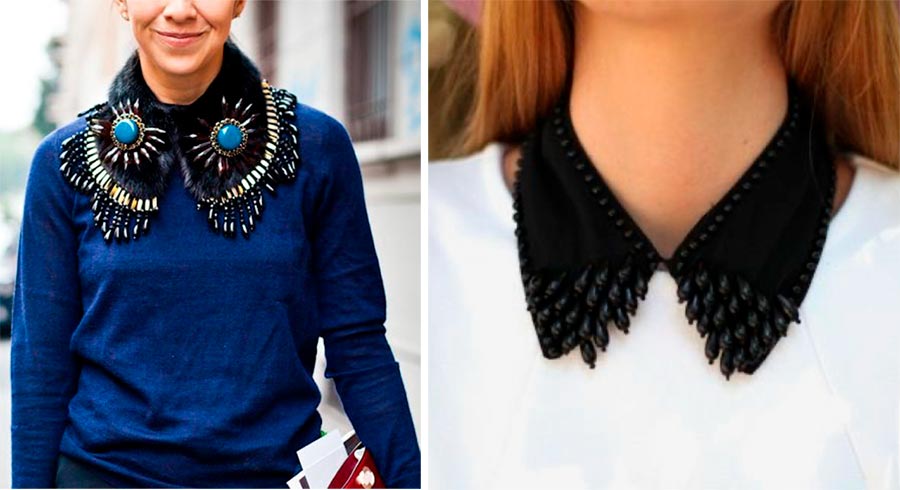 7. Le faux col est un autre accessoire impressionnant que vous avez définitivement oublié, mais il mérite néanmoins d'être sur cette liste, comme le look le plus décontracté, mais qu'est-ce qu'il y a, un T-shirt blanc ordinaire brillera de couleurs fantaisie.