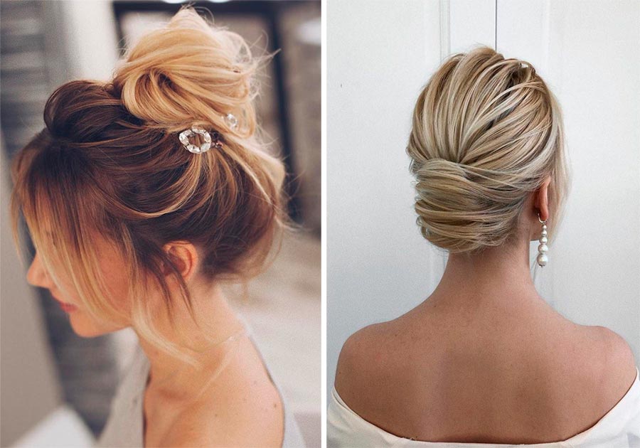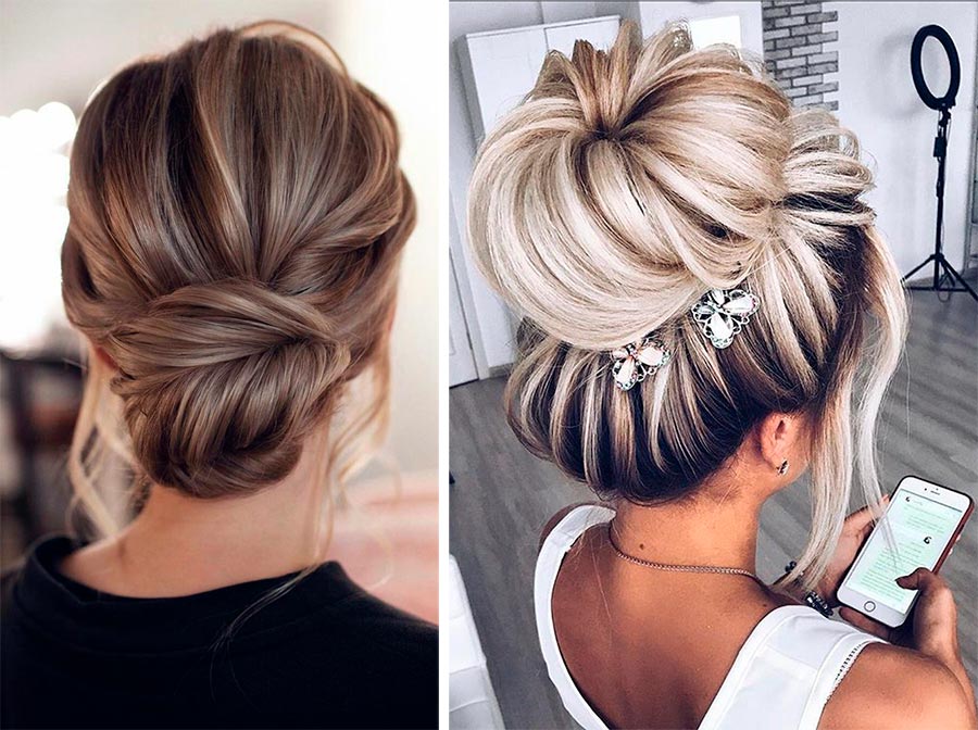 Un chignon haut sur le dessus de la tête ne doit pas être fait pour ceux qui ont un visage rond ou l'ovale du visage lui-même a un peu baissé. Dans ce cas, il est préférable de faire le faisceau juste en dessous de la ligne de couronne, à l'arrière de la tête. L'option "coquille" aux cheveux bouclés sera également pertinente, mais ils ne doivent pas être parfaitement lisses, il vaut mieux y ajouter une certaine note de négligence. Un chignon haut dans le style d'une ballerine conviendra aux femmes aux pommettes hautes et au visage ovale allongé. Vous ne pouvez pas faire un chignon, mais laissez une queue de cheval lâche, seuls les cheveux doivent être suffisamment longs et droits.