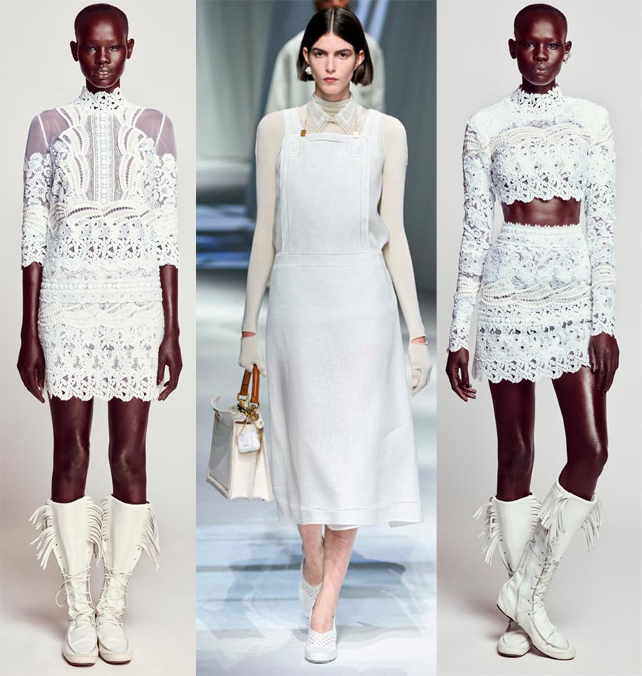 En cette saison printemps-été, les créateurs proposent de s'habiller non seulement en tout rose, mais aussi en tout blanc.