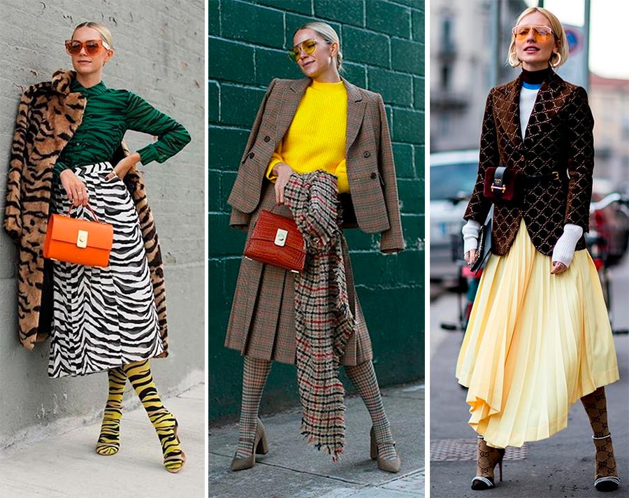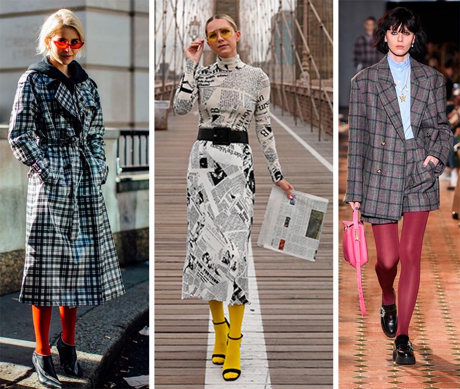 Le plus difficile à assortir, mais qui donne en même temps un grain de poivre à n'importe quelle image - des collants aux couleurs vives et imprimés.