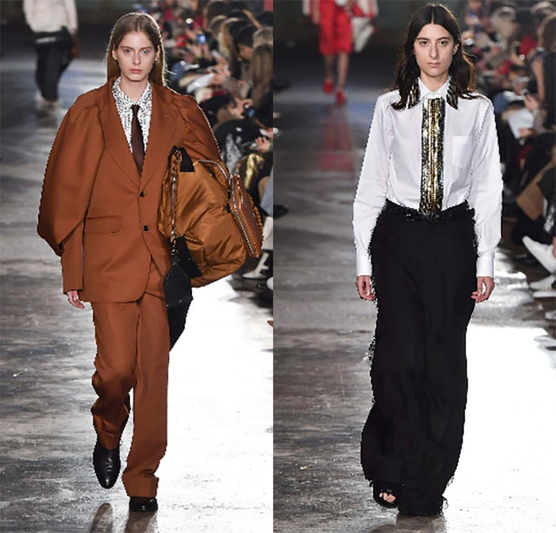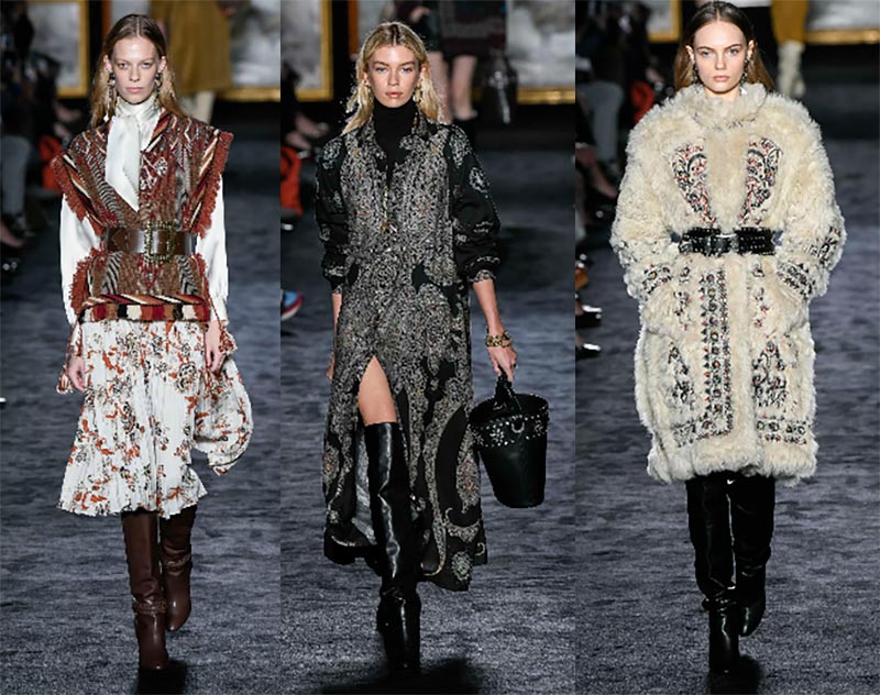Chez Céline, attention aux robes midi à cols ajourés, aux médaillons massifs, aux manteaux en mouton, aux jupes-culottes larges. Les gilets avec fourrure à l'intérieur sont la tendance la plus compréhensible, et les modèles allongés créeront également les lignes verticales nécessaires qui affineront. Ces gilets peuvent être décorés de broderies faites à la main.