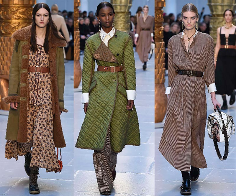 Les stylistes de la marque proposent de porter des manteaux à carreaux et des manteaux bouclés avec des foulards serrés, des pantalons courts et des jupes en satin.