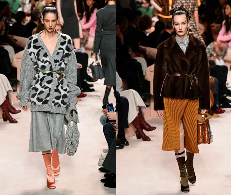 Quand, sinon à la retraite, pour porter de la fourrure, Fendi stylise les manteaux en peau de mouton avec des jupes en tricot dense. Les pulls léopard sont un autre amour de beaucoup de femmes. Aujourd'hui, ils sont à la mode, portez-les avec audace.