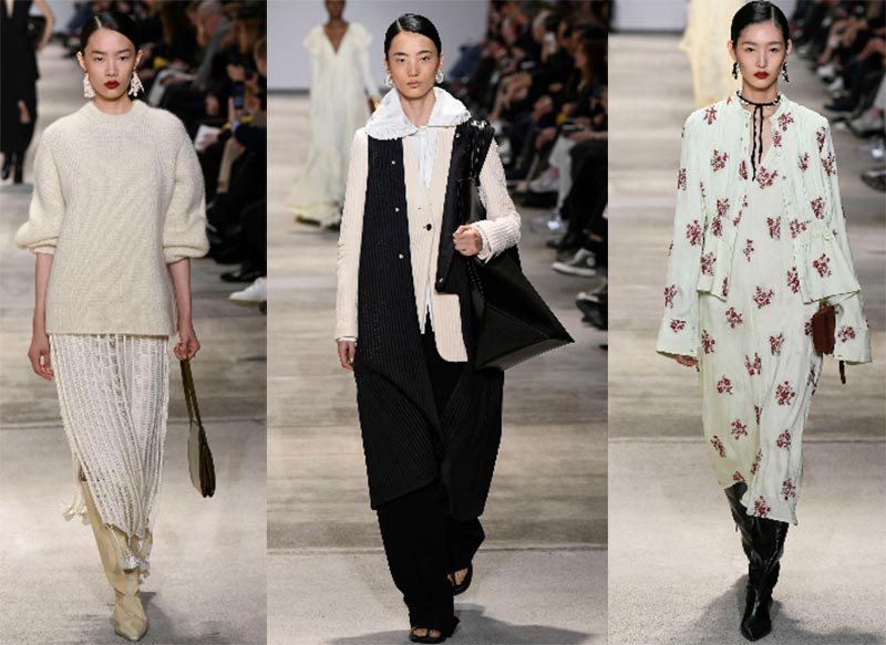 Conçues par Jil Sander, les tenues sont élégantes et féminines et iront bien sur n'importe quelle silhouette. Pulls blancs à manches retroussées, chemisiers à cols luxueux, robes blanches à l'imprimé floral rare. La principale caractéristique de la marque est les boucles d'oreilles massives. Les boucles d'oreilles sont une excellente alternative aux bijoux de cou fabriqués à partir de pierres naturelles, bien qu'elles soient toujours d'actualité aujourd'hui.
