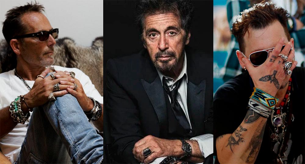 Lorsque je préparais cet article, j'ai demandé à mon conjoint ce qui l'intéresserait à lire, j'ai dit que je donnerais comme exemple comment Johnny Depp combine les bijoux. A quoi le mari, qui aime les bijoux, a dit que de tels hommes sont introuvables dans les rues de la ville, qu'il est unique et que les bijoux sont sa puce. Mais vous ne pouvez pas parler de bijoux pour hommes et ne pas montrer comment Jack Sparrow les combine sur lui-même. Je pense qu'il est important de commencer avec un seul bracelet, vous pouvez le combiner avec une montre, mais vous devez progressivement rassembler une collection de bijoux, les bracelets et les bagues doivent avoir une histoire.