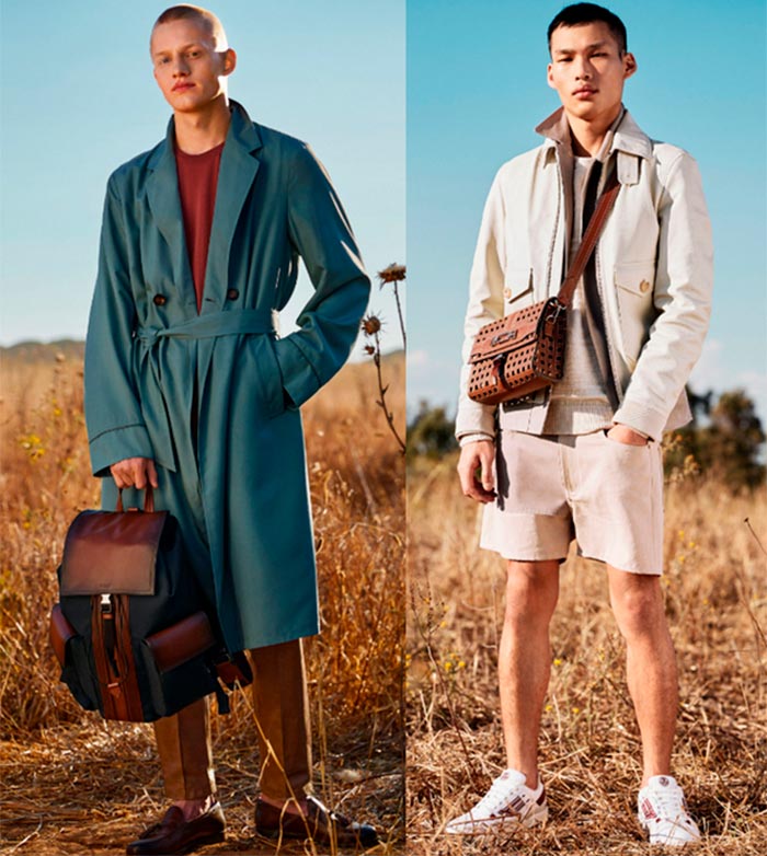 Ermenegildo ZegnaLes images d'Ermenegildo Zegna sont complétées par des sacs souples et informes, principalement en daim. De tels modèles ne sont pas typiques de la garde-robe d'un homme, mais ils ont l'air originaux et frais.