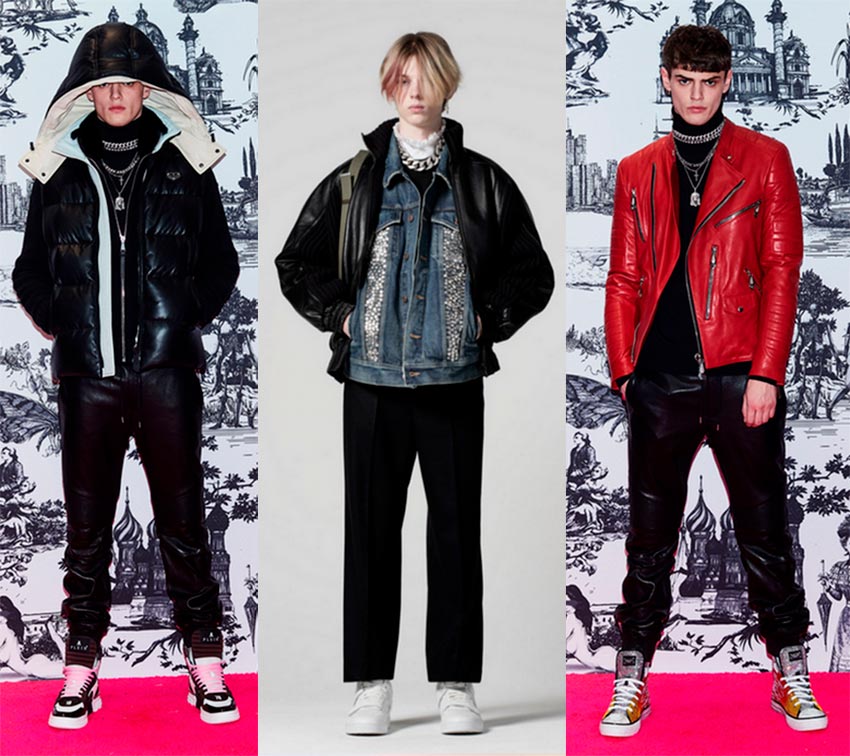 Pas dur comme de la pierre, mais du cuir et des chaînes.Dans les collections pour hommes, il n'y a plus de chaînes épaisses en or, mais en argent. Du cuir, vous pouvez choisir une veste transparente ou un nœud plus audacieux avec un pantalon.