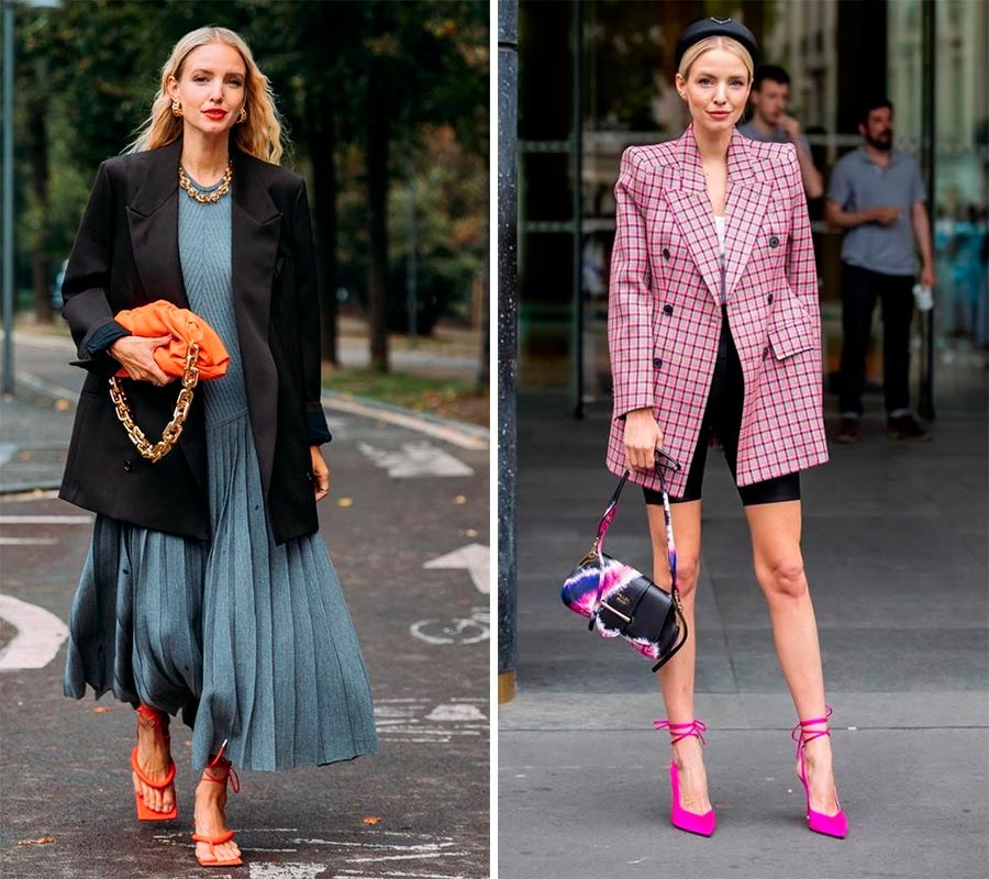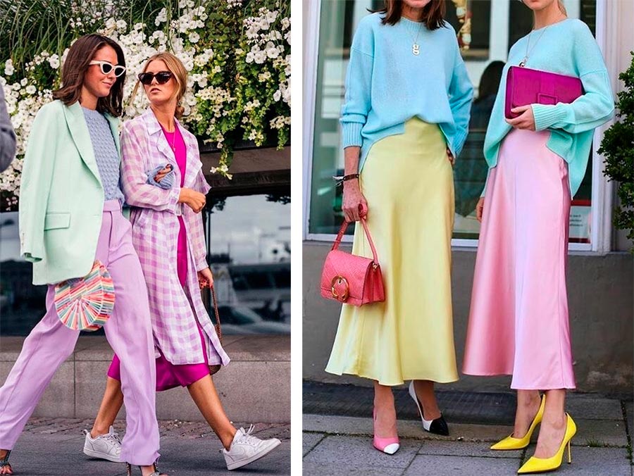 L'une des tendances de cette année est la combinaison de couleurs vives et de tons pastel. Si vous n'avez jamais utilisé de couleurs vives dans vos looks, je vous recommande de commencer par ajouter un accent. Cette combinaison est optimale pour la vie quotidienne, aussi bien professionnelle qu'informelle. Il est facile de diluer un ensemble de bureau avec une veste ou une veste dans une gamme riche, et une teinte flashy pour les hauts courts, les T-shirts et les T-shirts est la meilleure option pour l'été à venir.
