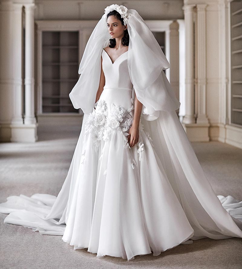 Comme auparavant, la robe de mariée classique avec une jupe ample reste souhaitable pour de nombreuses mariées, et reste donc en cette saison. Des jupes étagées luxuriantes, des dizaines de couches de résille et de tulle délicats, de longues traînes et un décor luxueux (perles, cristaux ou broderies florales) ornaient les robes de mariée des saisons printemps-été 2026. Dans une telle robe, vous vous sentirez vraiment fabuleuse et magique, comme une princesse.