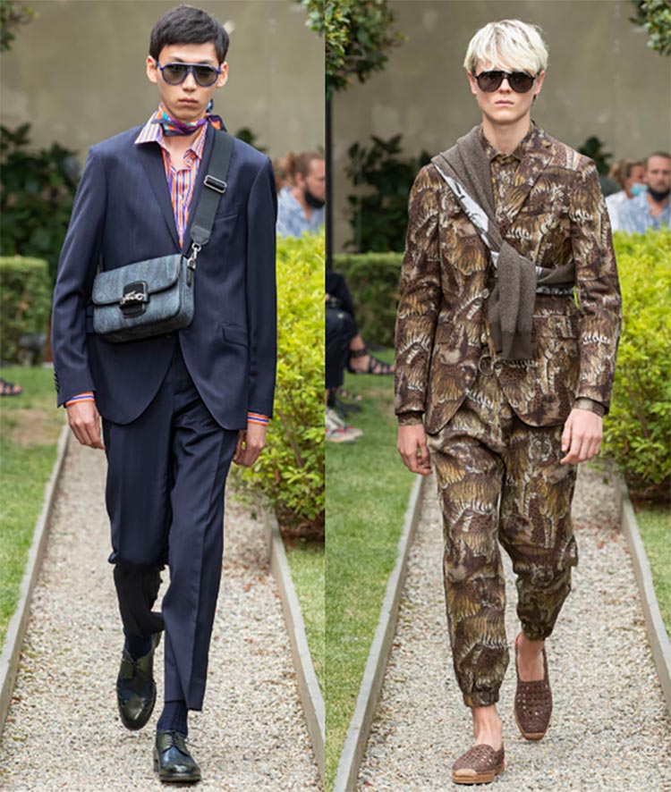 Etro Si vous avez la capacité et le désir d'attirer l'attention sur vous, achetez un costume avec un imprimé non conventionnel. Un tel costume peut être porté à des rendez-vous, à des réunions informelles avec des amis, à des expositions.