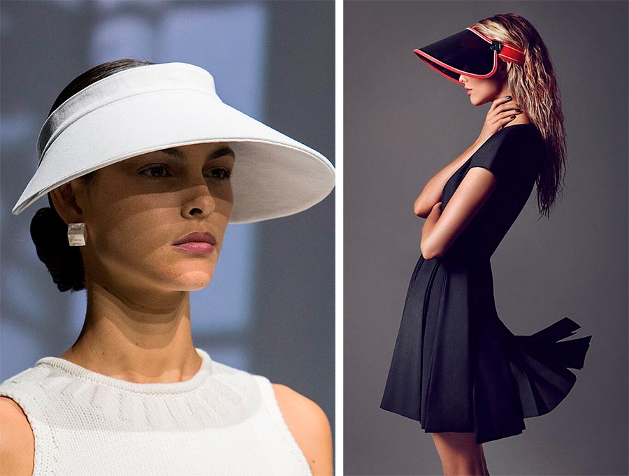 Cet accessoire de mode a été aperçu sur les défilés de nombreux créateurs. Elle s'est inscrite à la fois dans les looks sportifs et en combinaison avec des robes féminines. Les larges visières couvrant le visage peuvent être de couleurs, de formes et de textures complètement différentes. Il s'intégrera facilement dans une garde-robe estivale et ne vous laissera pas sans surveillance. Vous pouvez également utiliser des visières transparentes pour des looks plus audacieux et plus futuristes.