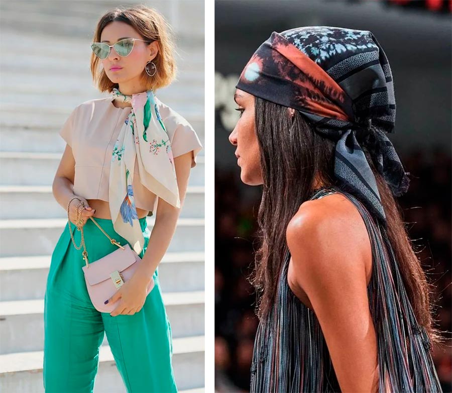 L'écharpe s'est longtemps installée dans les garde-robes des différentes saisons. Et ce n'est pas surprenant, car ce casque est très élégant et soigné sur n'importe quelle tête. Il peut être noué en turban, en bandana, sur la queue ou de bien d'autres manières. Par temps chaud, un foulard en soie léger est un excellent choix. Vous pouvez utiliser un foulard non seulement comme coiffe, mais aussi comme accessoire sur votre bras, votre cou ou votre jambe. L'écharpe est très polyvalente dans son utilisation, vous pouvez donc l'utiliser à votre guise.