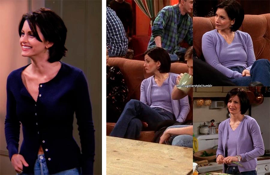 Très probablement, c'est après avoir perdu du poids que Monica a commencé à se sentir plus confiante et est donc tombée amoureuse de la longueur du mini. Dans la série, elle peut souvent être vue dans diverses jupes et robes : elles différaient par leur style et leur couleur, mais la grande majorité d'entre elles étaient courtes (au moins dans les premières saisons de la sitcom).