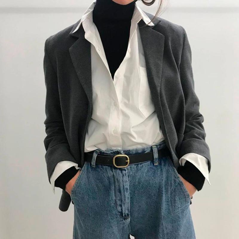 Option deux (épargnant) - laissez les jeans tranquilles et gardez simplement l'équilibre des volumes, c'est-à-dire choisissez des produits d'épaule plus lâches et allongés.