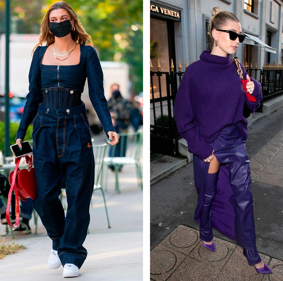 Il convient d'ajouter que la star du street style elle-même a aussi ses idoles, les soi-disant guides du monde de la mode. Les looks de Hailey Bieber font souvent écho au style de la légendaire princesse Diana. Le modèle a même joué dans une séance photo, où elle a répété certains des arcs emblématiques de Lady Dee (par exemple, sweat-shirt + vélos + sac de style business ou veste surdimensionnée + Cosaques + casquette de baseball).