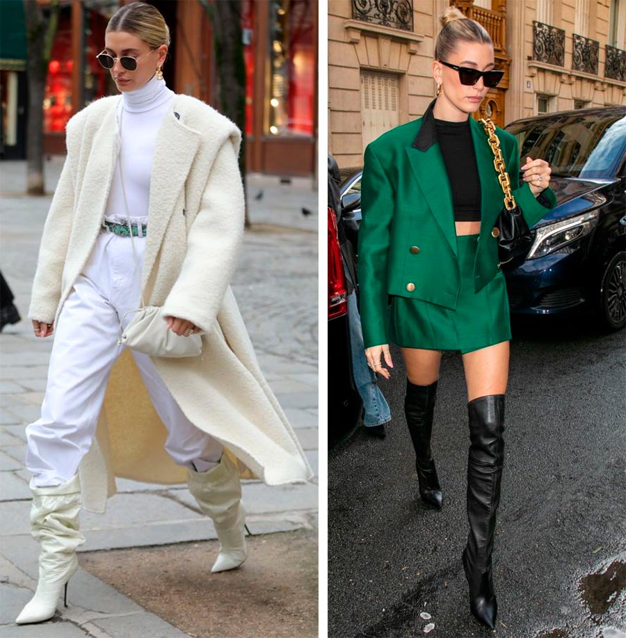 La femme de Justin Bieber aime visiblement combiner différents styles vestimentaires : on la voit souvent dans un ensemble tendance gagnant-gagnant blazer oversize + jogging + sandales à petits talons. En même temps, elle ne manque pas l'occasion d'ajouter des notes de sexualité et d'audace à ses images - Haley Bieber met en valeur sa silhouette idéale avec des robes mini-longues, des crop tops et des pantalons en latex adaptés.