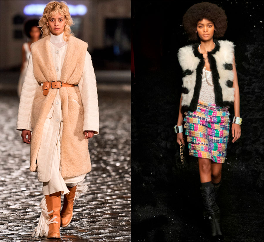Le consommateur de masse n'a pas encore eu le temps d'exprimer ses gilets de fourrure, et ils reviennent à la mode. Collections : Chloé, Chanel.