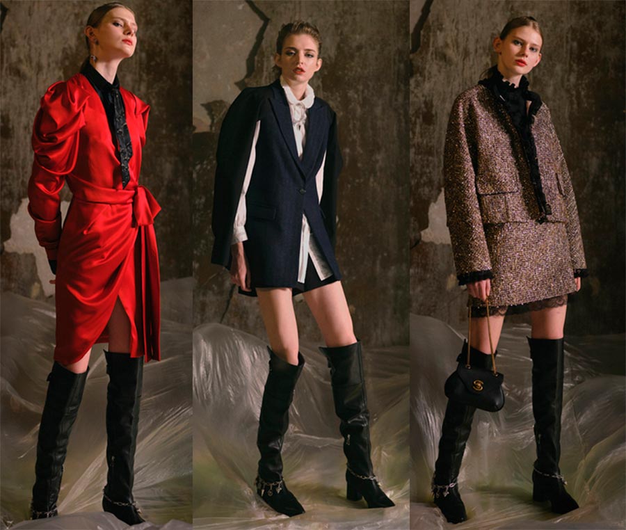 Shiatzy-ChenDétails : rouge, dentelle, gants, bottes.