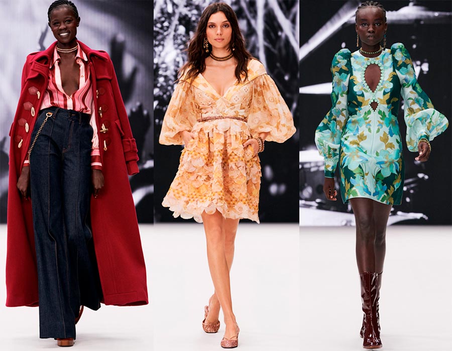 ZimmermannDétails : décolletés bouclés, robes courtes au style romantique, chemises ouvertement déboutonnées.