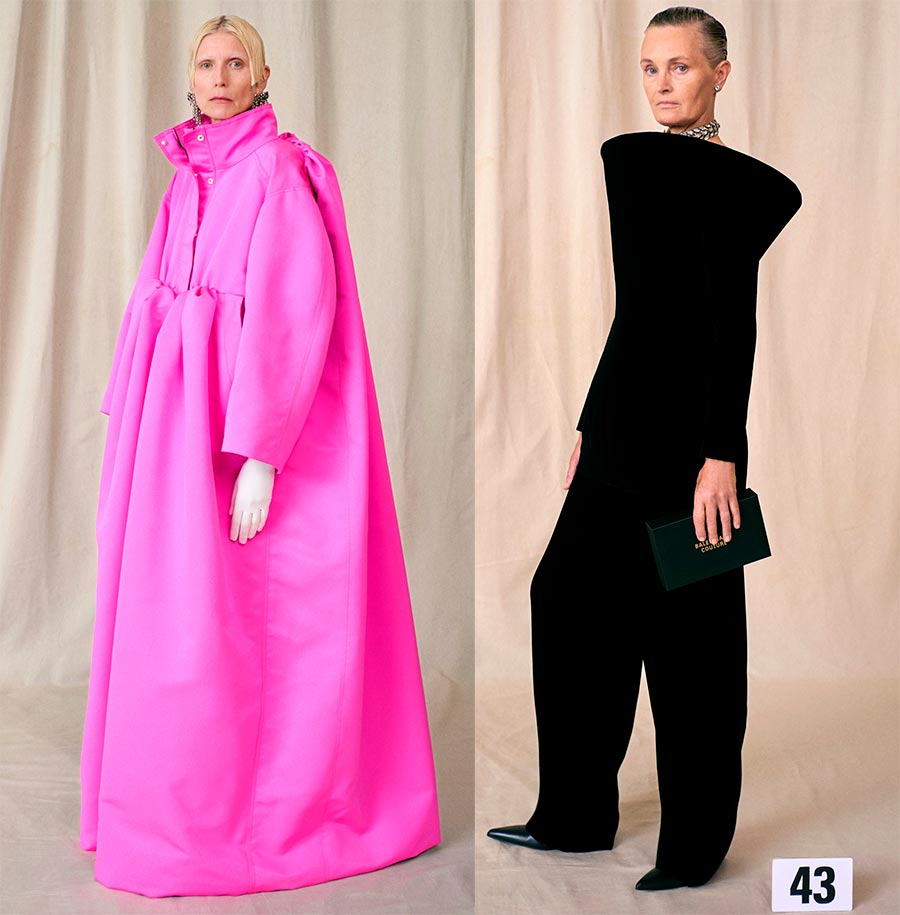 Bien qu'à première vue, la couture de Balenciaga se soit avérée plutôt laconique, Demna Gvasalia ne pouvait peut-être pas laisser le public sans quelque chose de non standard. Des vêtements qui n'auraient jamais été attribués à la haute couture ont fait leur apparition sur les podiums, à savoir des jeans, des survêtements dans l'esprit des années 90 et des peignoirs en éponge.