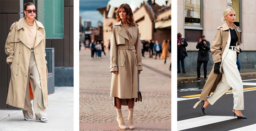 Un trench est plus une garde-robe d'automne qu'une garde-robe d'hiver. Les versions raccourcies qui étaient populaires il y a plusieurs années sont considérées comme anti-tendance. Vous pouvez toujours les trouver en magasin, mais il vaut mieux éviter de tels modèles. Choisissez maintenant un trench avec une longueur en dessous du genou, vous pouvez même aller jusqu'à la cheville, coupe ample et sans décor inutile. Un tel trench-coat peut être porté sur des robes pour que la couche inférieure ne soit pas visible, ou avec un pantalon palazzo, qui est très pertinent. Une coupe ample vous permettra de créer des superpositions, de mettre un trench-coat sur un sweat à capuche, par-dessus une veste - cela vous réchauffera en plus pendant les froides journées d'automne.