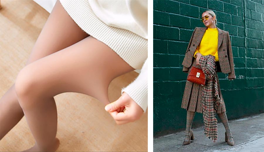 Les collants en nylon translucide se marient bien avec des robes, des jupes et des shorts en tissu dense. Pour l'hiver, quand il fait déjà assez froid, des collants épais iront bien en complément des vêtements chauds, quand il est clair que la jupe ou le short ne sont pas de style volant, mais gardent leur forme. Les collants nude moulants restent l'anti-tendance. Après tout, c'est même étrange quand, par temps sous zéro, vous avez soi-disant les jambes nues. J'ai vu des options similaires sur des sites chinois, quand il y a presque de la fourrure à l'intérieur, mais de l'extérieur, elles sont de la couleur de la peau. Dans ce cas, il vaut mieux choisir des collants noirs ou colorés.