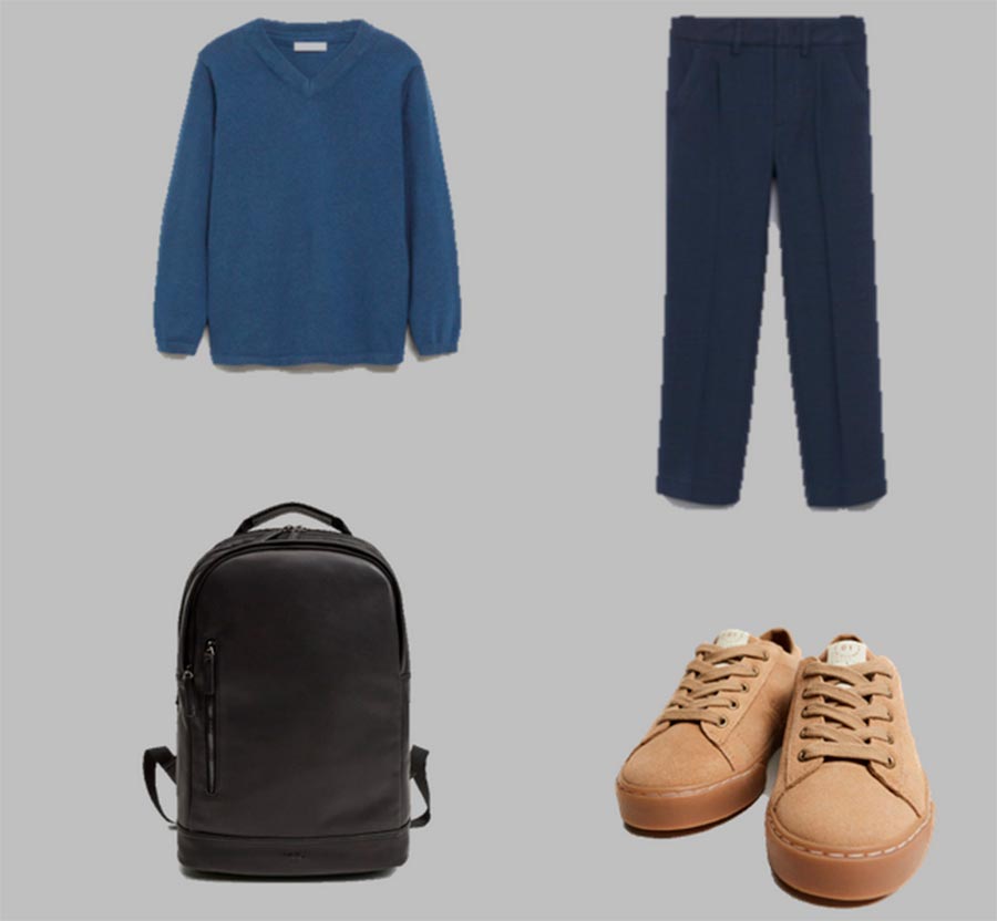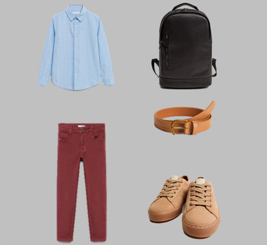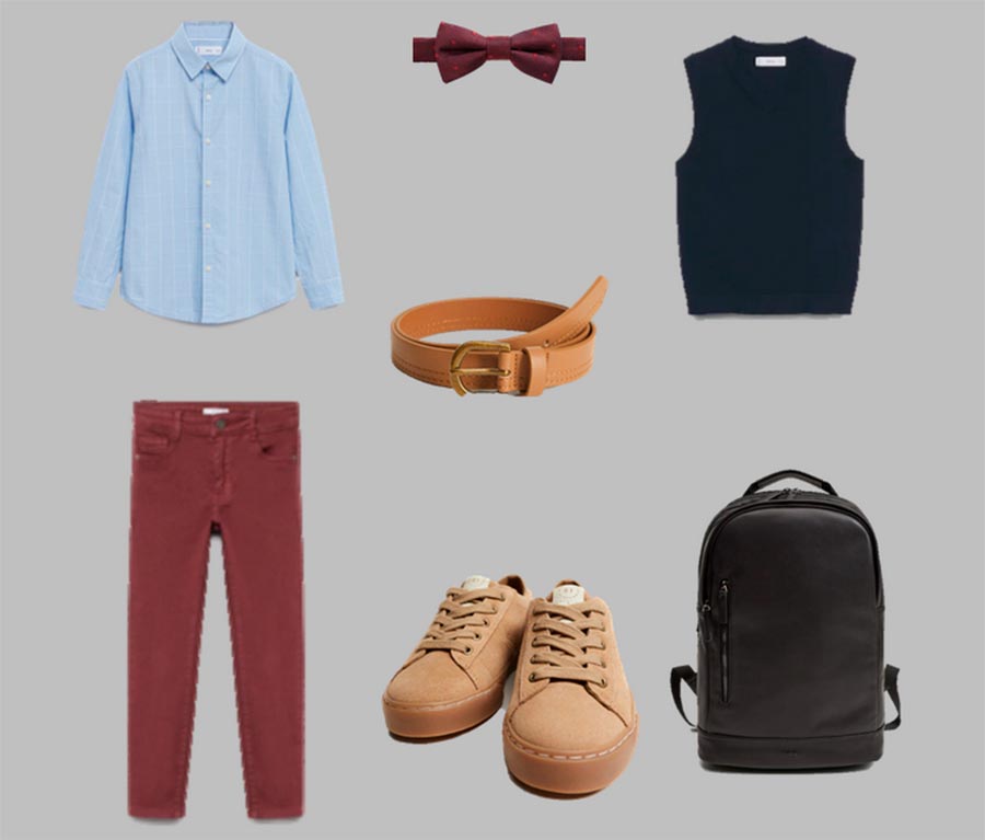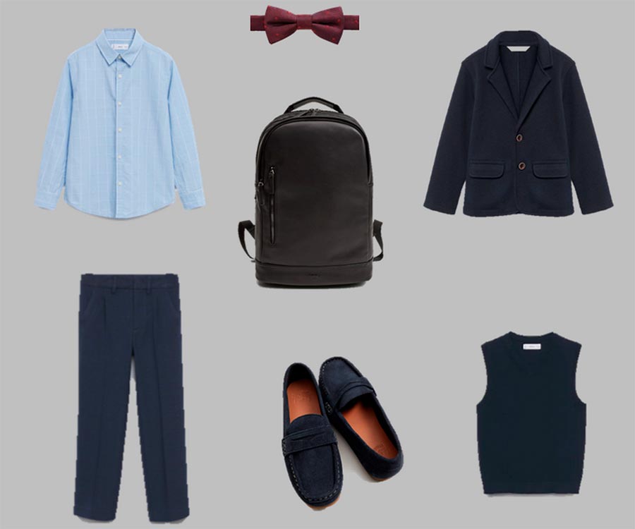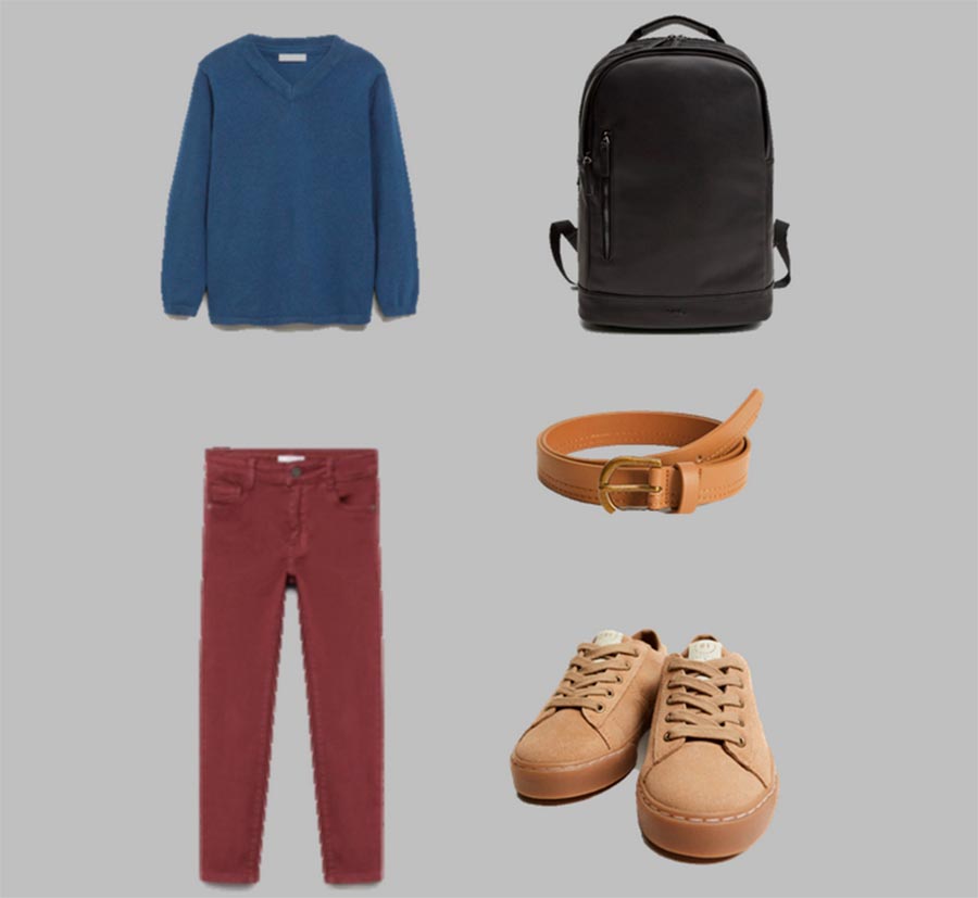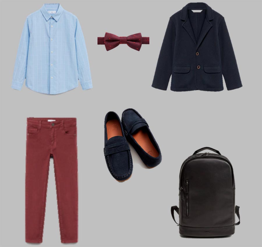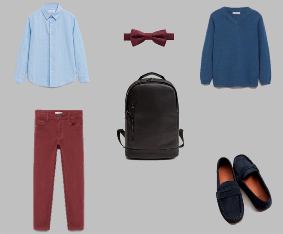 Certaines écoles ajoutent du bordeaux à la palette de couleurs pour le bleu foncé et le noir. Si vous avez de la chance que le bordeaux soit acceptable à l'école, voyez quelle capsule pour garçon peut être assemblée à Mango.