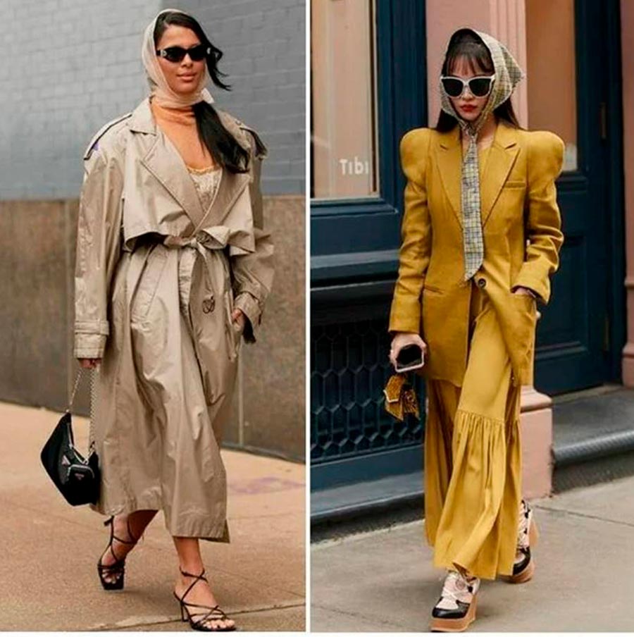 En automne, comme nous le savons, il fait nettement plus froid que l'été et vous voulez vous couvrir les oreilles et la tête du mauvais temps. Mais faisons-le avec style. Les écharpes à la mode vous aideront avec cela. Ils peuvent être portés de différentes manières : enroulés autour du cou ou noués à l'arrière de la tête. Privilégiez les options à partir d'un matériau plus dense. Vous vous sentirez plus à l'aise dans ces mouchoirs à l'automne.