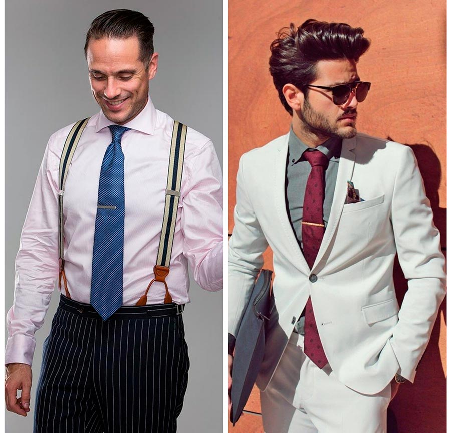 Bretelles - ils peuvent facilement remplacer la ceinture, créant une image très intéressante. Mais ne les utilisez jamais avec une ceinture. Juste une chose! Utilisez des bretelles boutonnées pour souligner l'exclusivité et le statut. Les bretelles modernes ont des clips en métal. Ils sont plus jeunes, mais pas moins élégants.