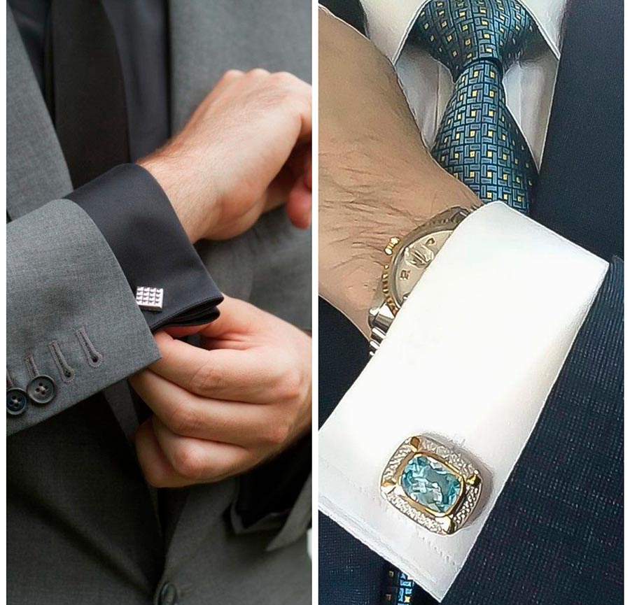 Boutons de manchette - pas rare dans une garde-robe masculine. Ils ont l'air très élégants, mais le niveau d'élégance doit être respecté. Pour les jours de semaine, vous pouvez utiliser des boutons de manchette neutres et pas très chers. Pour un style professionnel, les boutons de manchette sont bien adaptés, ce qui peut mettre l'accent sur le conservatisme et le statut. L'essentiel ici est la brièveté. Des boutons de manchette élégants seront en place pour les occasions spéciales. Ils peuvent être des bijoux avec des pierres précieuses et coûteux.