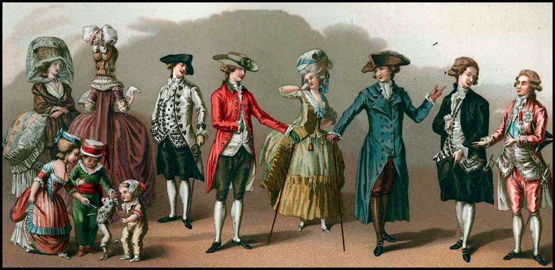 Quand il s'agit de la mode masculine, elle a aussi une forte influence anglaise. Le manteau de drap anglais remplace le caftan de soie français. Le frac anglais, contrairement au caftan français, était cousu à partir de tissus de couleurs plus sombres et plus strictes. Le frac avait un col montant et des ourlets pliés à partir de la taille. Un tel frac servait de vêtement de cérémonie. Mais les Français restaient néanmoins fidèles à eux-mêmes et, d'une manière ou d'une autre, ils ajoutaient de la broderie au frac anglais et le cousaient parfois en soie.