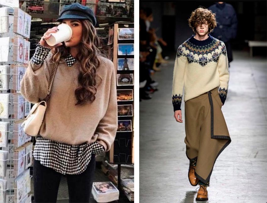 Le choix des modèles est très large, ils peuvent être gros tricotés et fins. Composition : coton, cachemire, laine. Les pulls peuvent être idéalement combinés avec des chemises (également possible pour les hommes) et des T-shirts. Un pull aidera à créer un look élégant et confortable; il peut être combiné avec des jupes en soie ou des pantalons amples. Ce n'est pas si difficile de battre un truc d'homme, si le pull est volumineux, il peut être porté comme une robe !