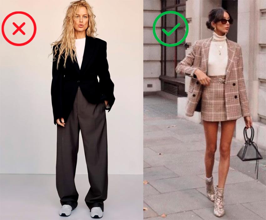 1. Coupe obsolète des choses. Malheureusement, il existe encore des magasins de vêtements qui vendent activement des styles obsolètes. Et comme on choisit des modèles plus calmes et laconiques pour le travail, il est important de considérer la coupe des choses. Le look le plus simple avec des choses réelles sera toujours meilleur qu'un look réfléchi avec des choses qui ont une coupe obsolète. Par conséquent, faites toujours attention à la coupe, même une telle nuance peut devenir le point culminant de votre image.