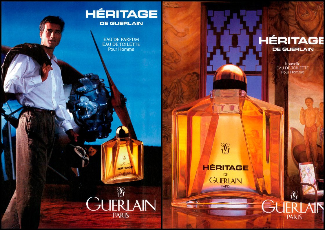 En 1992, la Maison Guerlain introduit Héritage.Jean Paul Guerlain a incarné sa nouvelle vision d'un homme traversant la ligne des siècles au son de ce parfum. Parfum d'héritage forestier épicé pour l'homme de demain, créé par l'homme moderne, inspiré par les hommes du passé. Un parfum qui peut être porté par quelqu'un qui est fidèle à lui-même, aux traditions, qui regarde avec audace vers l'avenir.