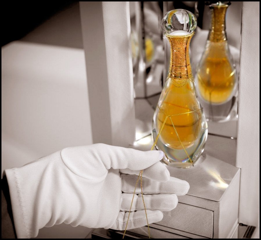 En respirant le parfum de "J'adore!", on peut imaginer comment une couverture légère glisse sur les épaules nues d'une femme aimée.