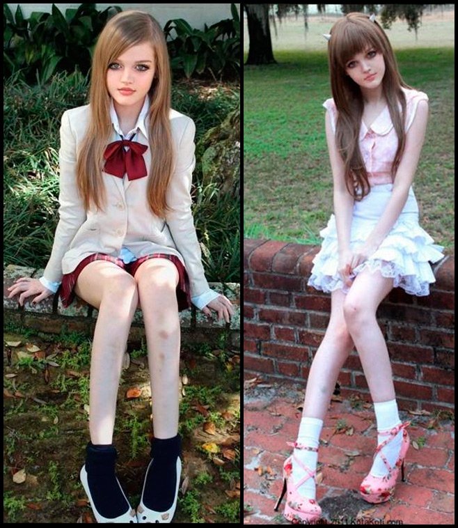 Regardez cette poupée fille idéale, elle ressemble à une très jeune fille, elle a l'air d'avoir environ 15 ans, même si en fait Dakota n'est plus une enfant, elle est plus âgée que beaucoup d'entre nous, car elle est née le 18 août 1990, ce qui signifie que cette poupée fille idéale aura bientôt 22 ans.