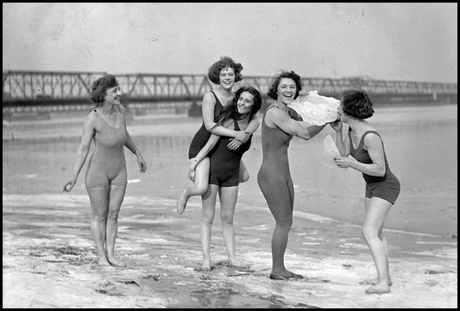 Dans les années 1920, se détendre sur la plage est devenu l'un des loisirs préférés des Européens. C'est au cours de ces années que les maillots de bain perdent d'abord leurs manches, exposant leurs bras, puis les pantalons, exposant leurs jambes, deviennent lisses et bien profilés. Les années 1920 ont également vu l'introduction des premiers maillots de bain deux pièces.